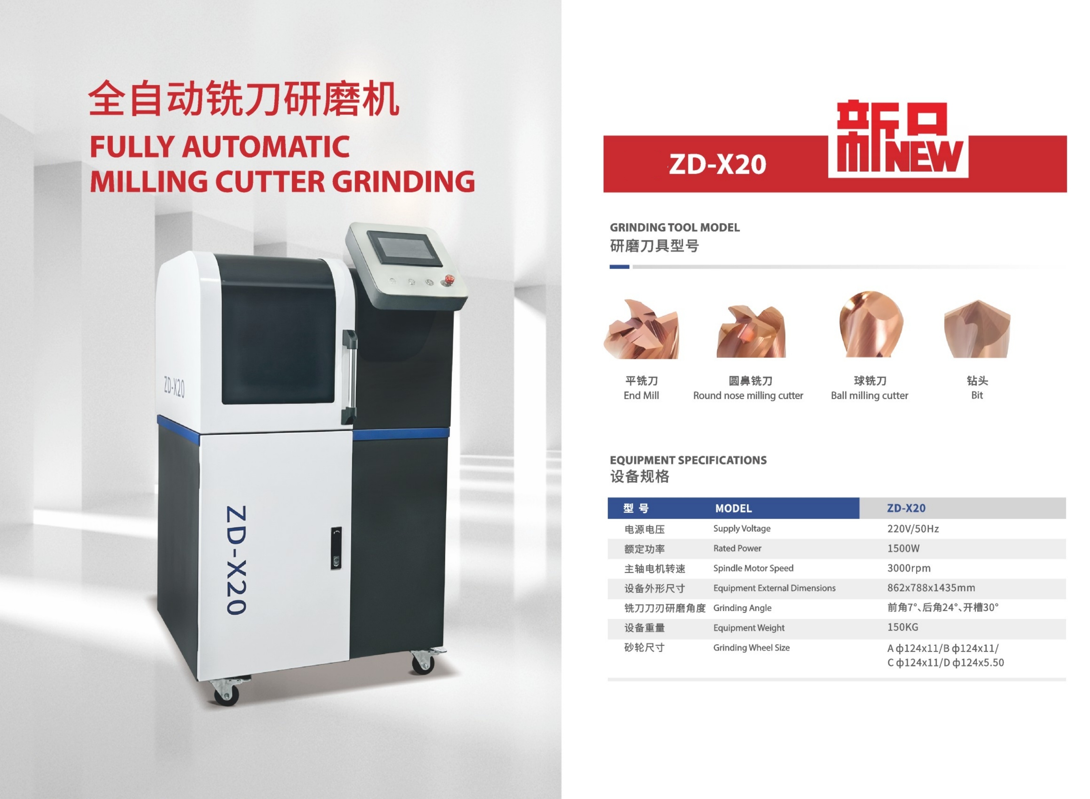 FULL AUTOMATIC MILLING CUTTING GRINDER ZD- X20