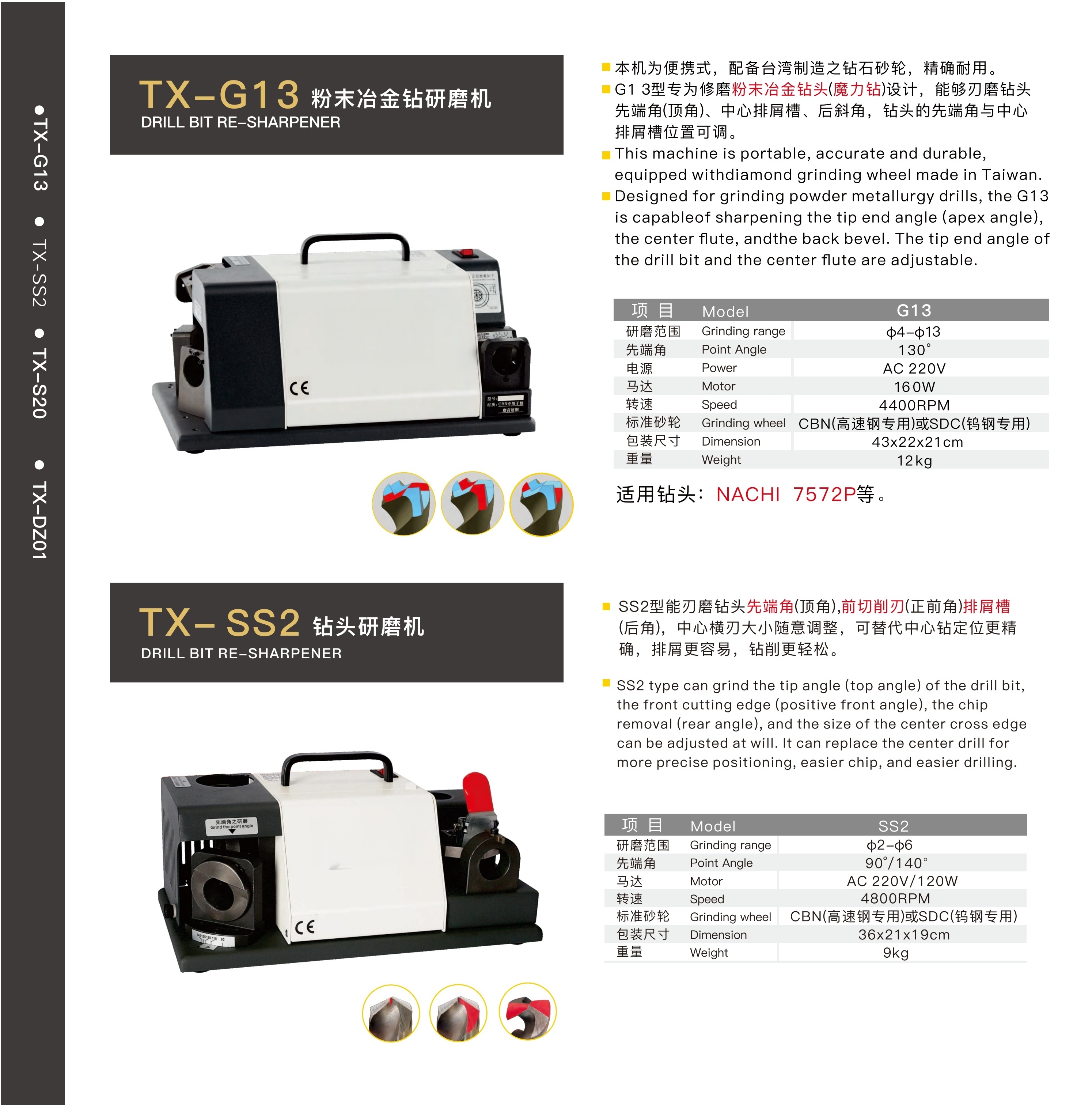 G13 /SS2 DRILL BIT RE-SHARPENER( FOR GRINDING POWDER METALLURGY DRILLS )