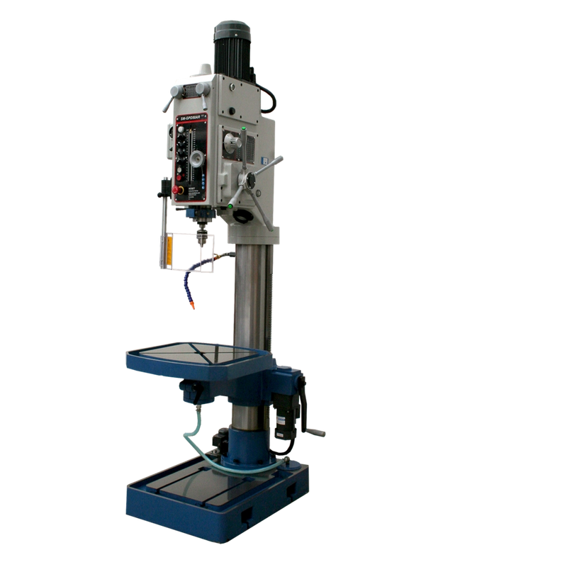 This is an excellent buy in a heavy-duty geared head Drill Press. Equipped with a large tee slotted table and power feed, this machine is robust enough for milling, drilling and boring. And the head is adjustable on the column! Head also swivels left and right. These features expands the capacity of this machine. You can also change speeds quickly and easily.