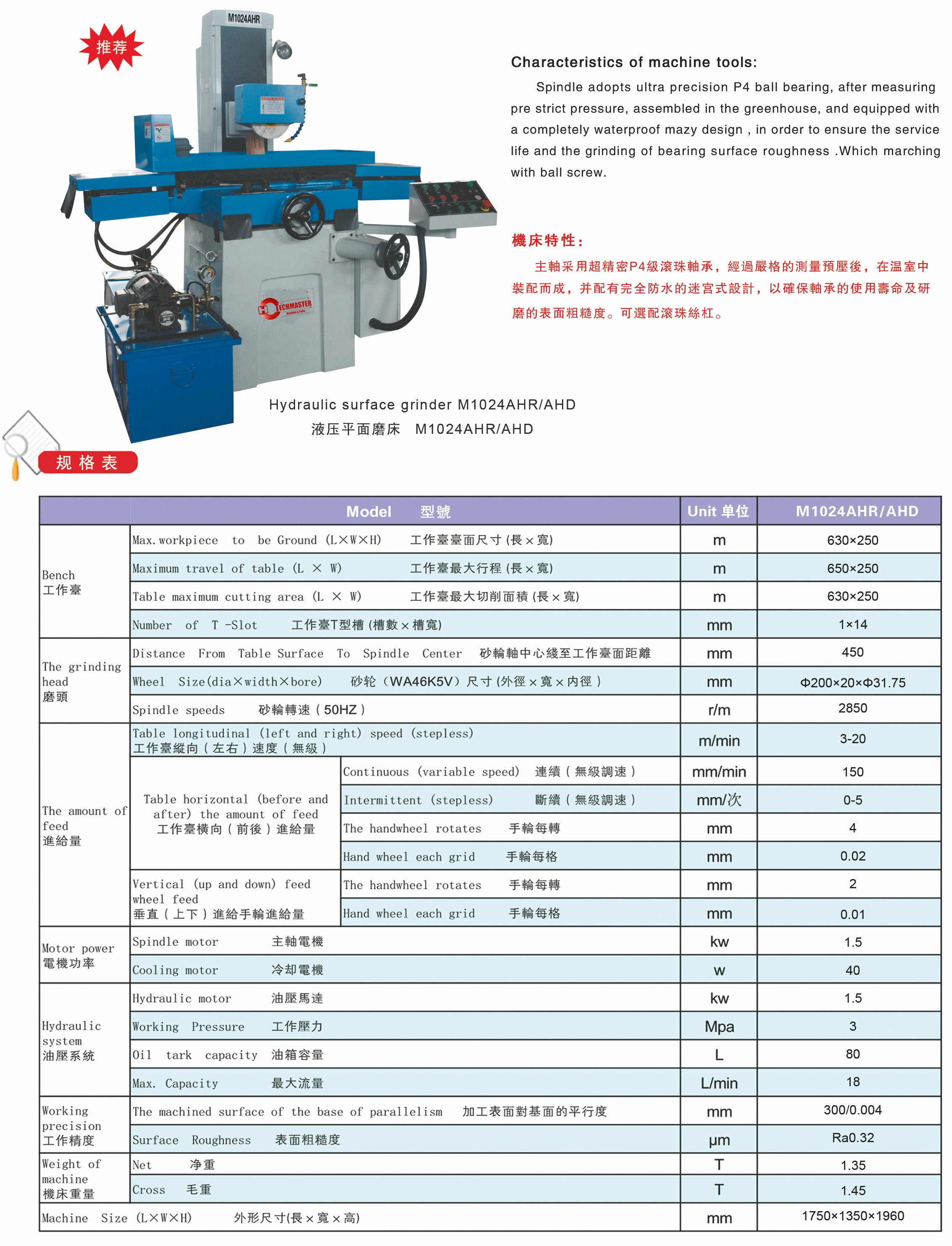 HYDRAULIC AUTOMATIC PRECISION SURFACE GRINDER MY SERIES M1024AHR/AHD