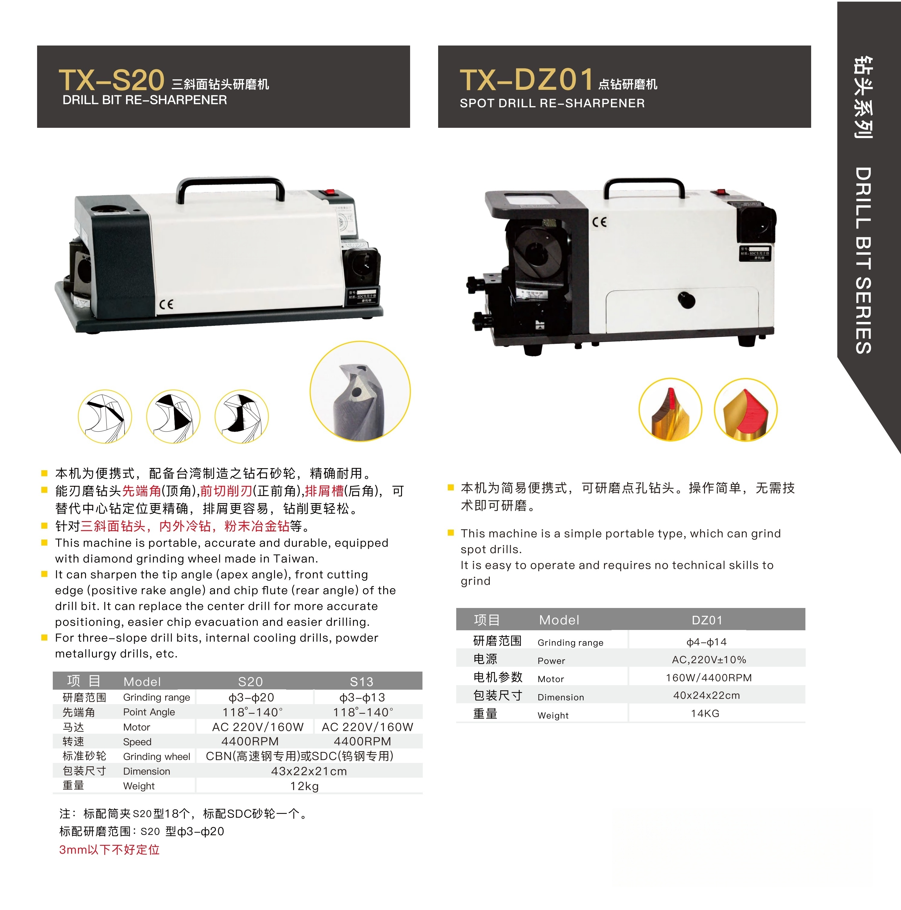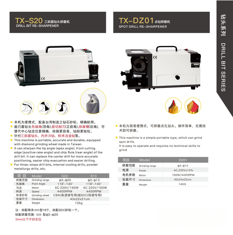 S20 / DZ01 DRILL BIT RE-SHARPENER( FOR THREE -SLOPE DRILL BITSINTERNAL COOLING DRILLS , POWDER METALLURGY DRILLS )