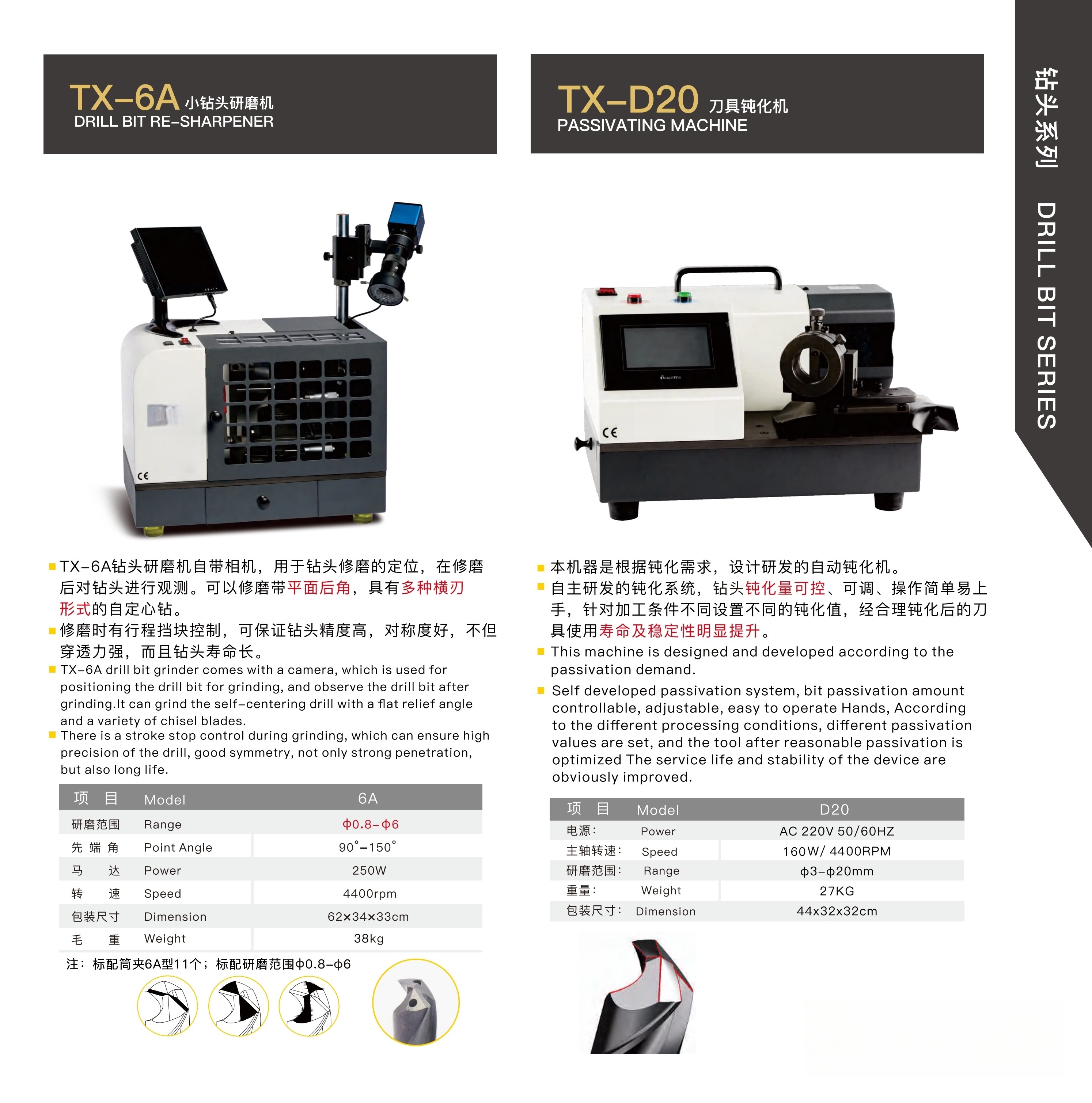 S20 / DZ01 DRILL BIT RE-SHARPENER( FOR THREE -SLOPE DRILL BITSINTERNAL COOLING DRILLS , POWDER METALLURGY DRILLS )
