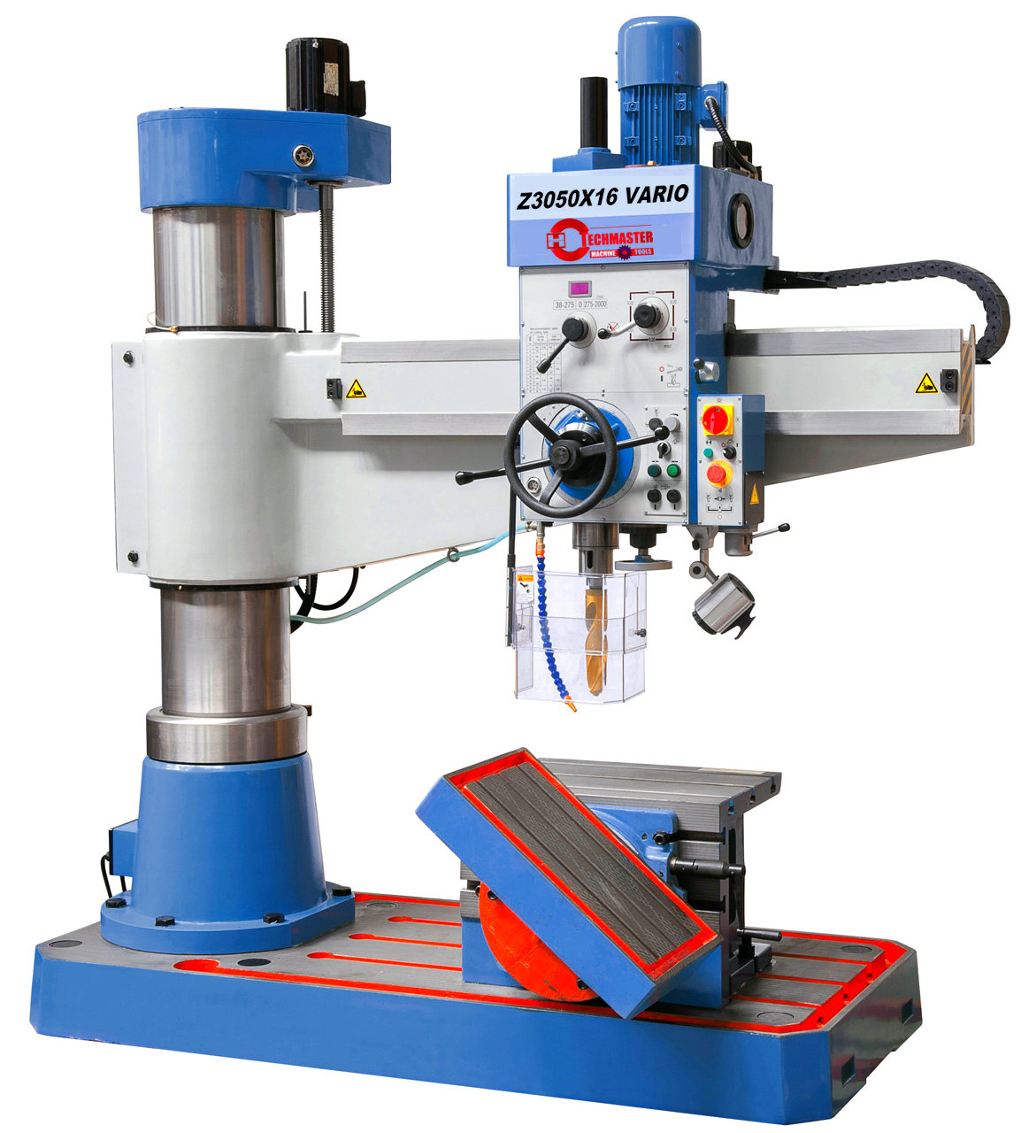 Lifting motor ensures easy height adjustment of radial arm keeping the spindle in position – ideal for repetitive operations