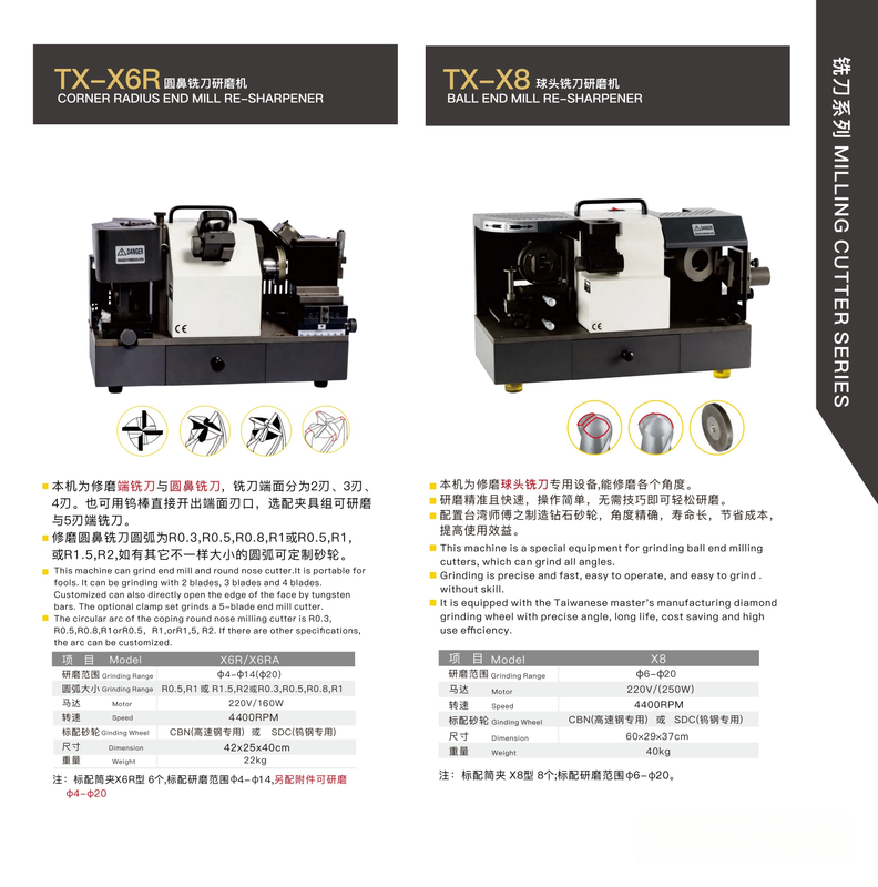 X8 BALL END MILL RE-SHARPENER