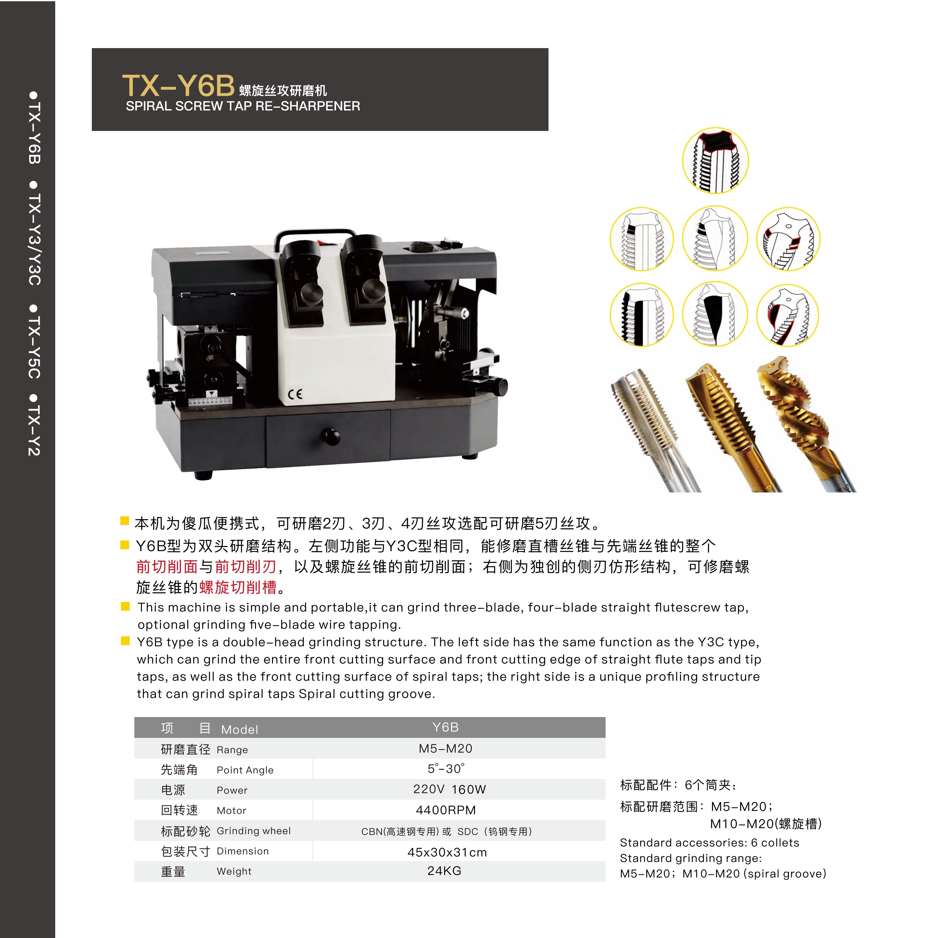 Y6B SPIRAL SCREW TAP RE-SHARPENER